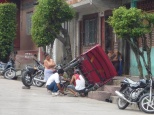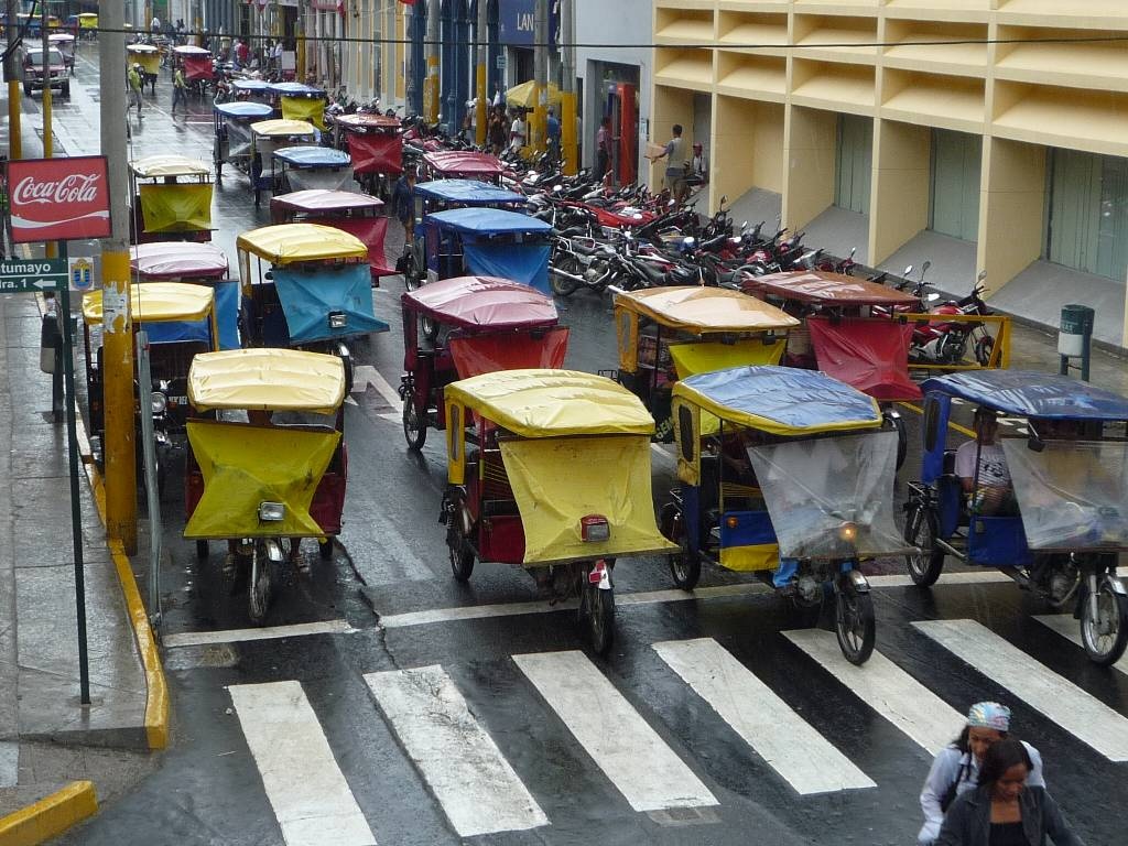 ...und besonders farbige Mototaxis bei Regen