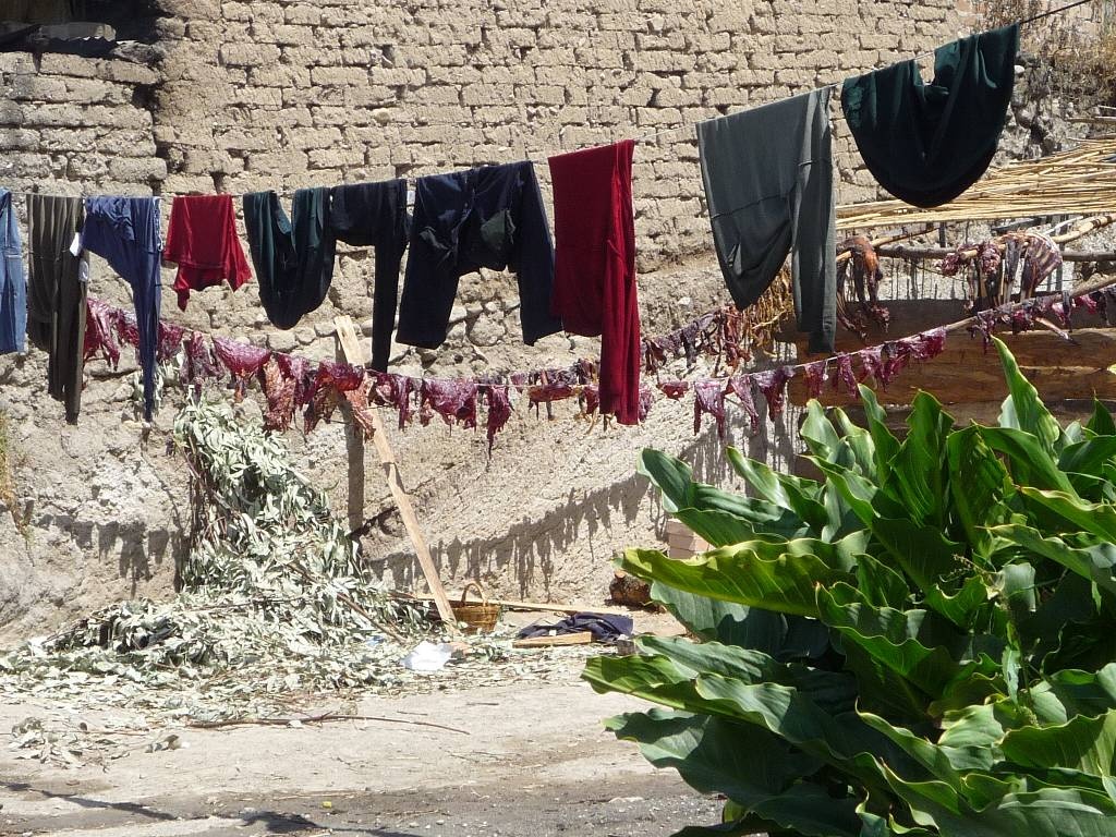 Kleider und Fleisch am Trocknen