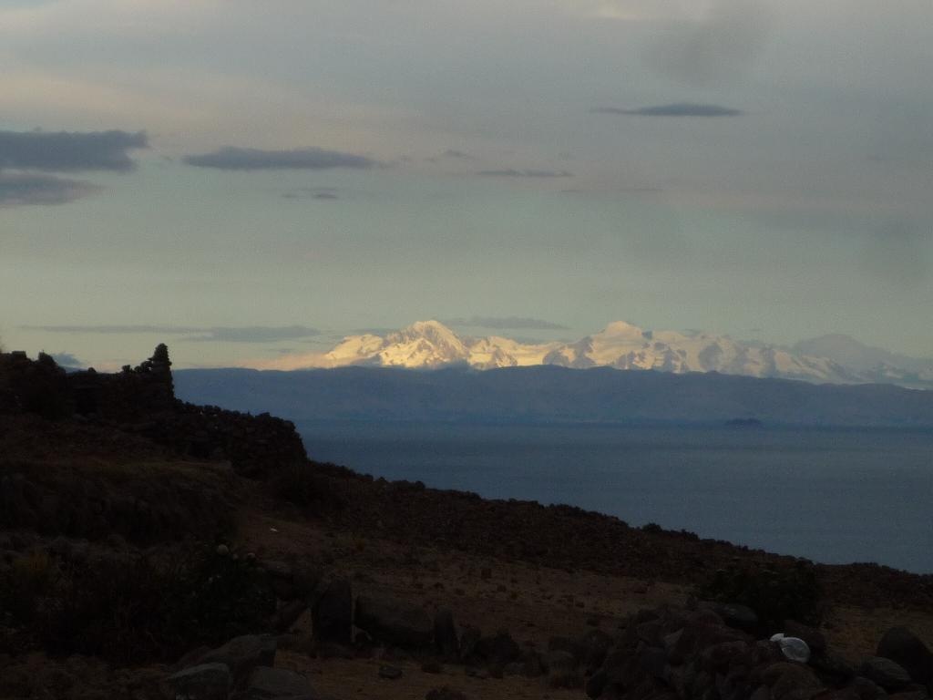 Blick von der Isla Amantaní auf bolivianische Gipfel...