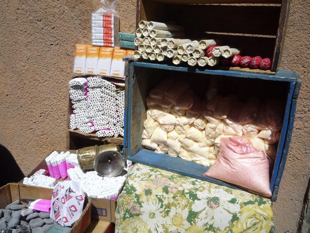 Strassenkiosk mit Dynamit, Explosionsverstärker und Coca-Zigaretten