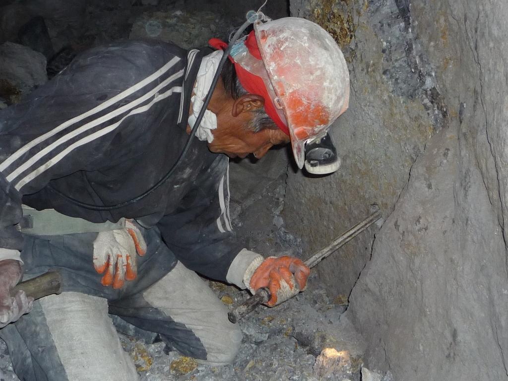 Das Loch für eine Dynamitstange erfordert viel mühselige Handarbeit