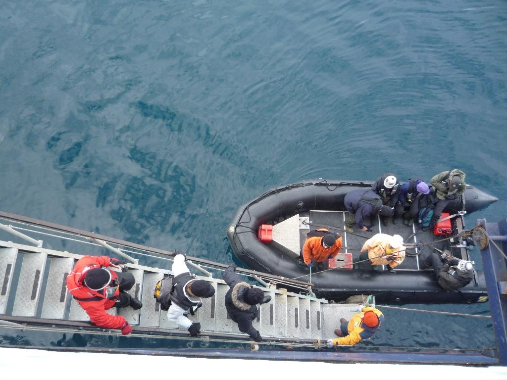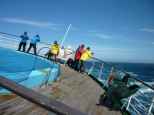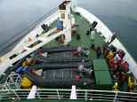 ...die Gangway hinunter zur ersten feuchten Fahrt