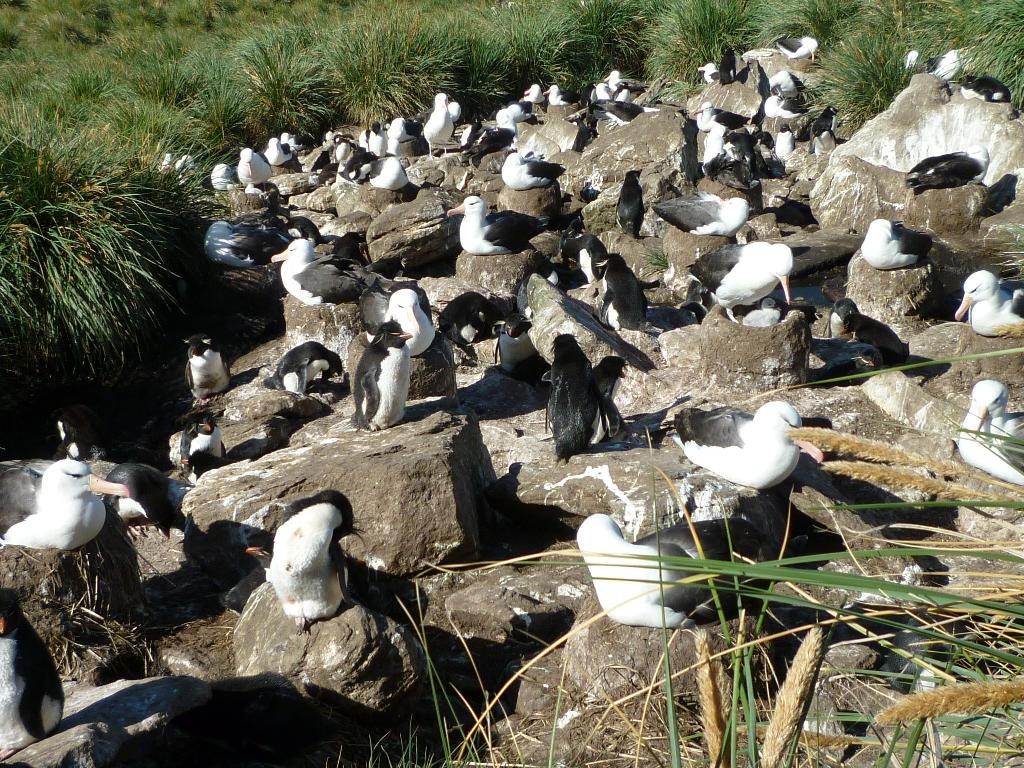 Wahnsinn! Erste Tuchfühlung mit einem Kunterbunt von Albatrossen und Felsenpinguinen...