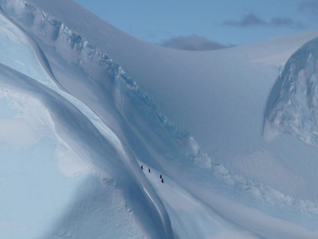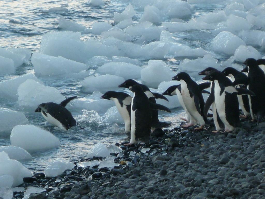 Aufgeregt suchen sie einen Weg durch die Eisstücke