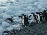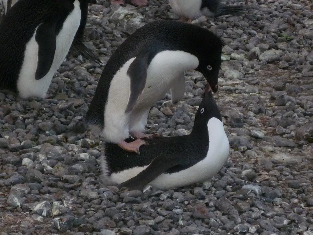 Wir erwischen unsere ersten Adéliepinguine in einem intimen Moment