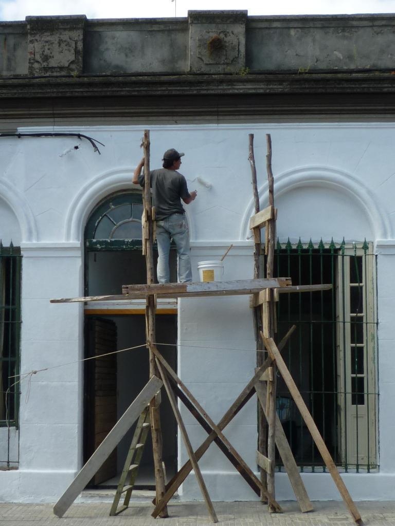 Maler in Montevideo mit spektakulärem Gerüst