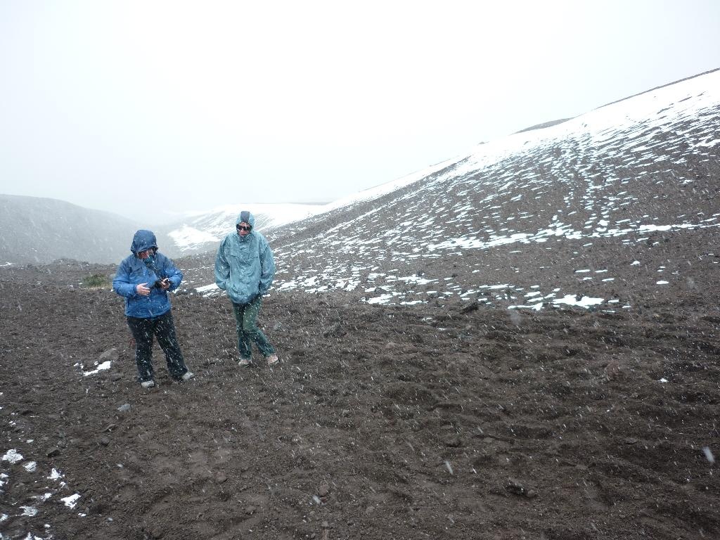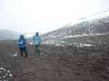Im eisigen Schnee und bitterkalten Wind beginnen wir den Aufstieg...
