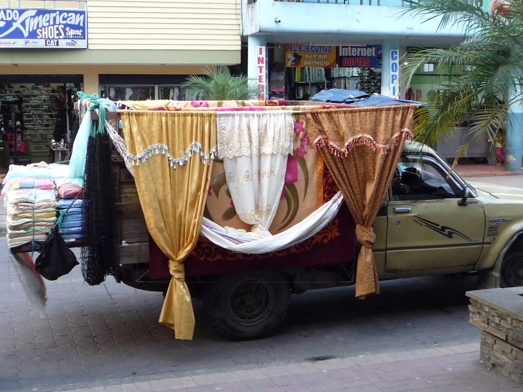 Kein Leichenwagen, sondern mobiler Stoffverkauf