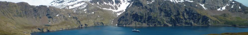 "Lyubov Orlova" Am 20. Dezember stehen wir mit Sack und Pack am Pier und starten das Abenteuer zum ewigen Schnee und Eis (Reiseroute im Google maps). Für die nächsten 19 Tage ist die "Lyubov Orlova" das Zuhause von uns und weiteren 90 Gästen. Wir lernen viele interessante, sympathische, aber auch sehr spezielle Menschen kennen. Es sind auch einige Schweizer an Bord und zusammen verbringen wir viele unterhaltsame Stunden. Wir treffen auf Mitreisende, die diese Reise schon seit Langem planen und entsprechend vorbereitet und ausgerüstet sind (mehreren Kameras, langen Teleobjektiven, polartauglichen Markenkleidern, themengerechten Büchern, etc.) und bis zu fünfmal mehr bezahlt haben. Wir hingegen springen ohne grosse Ahnung ins kalte Wasser, haben noch auf die Schnelle zwei "wasserresistente" Skianzüge gemietet und müssen uns eingestehen, dass wir bis heute nicht gewusst haben, dass es die Inselgruppe South Georgia gibt, geschweige denn wo sie liegt.
